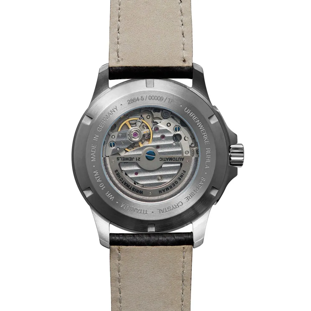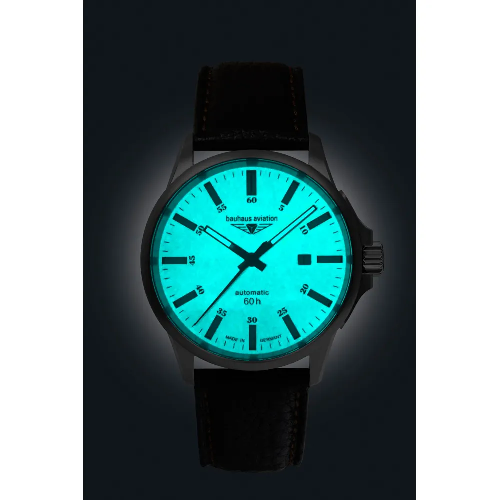 Bauhaus Aviation Automatikuhr mit Titanium Gehäuse und braunem Lederband 2864-5