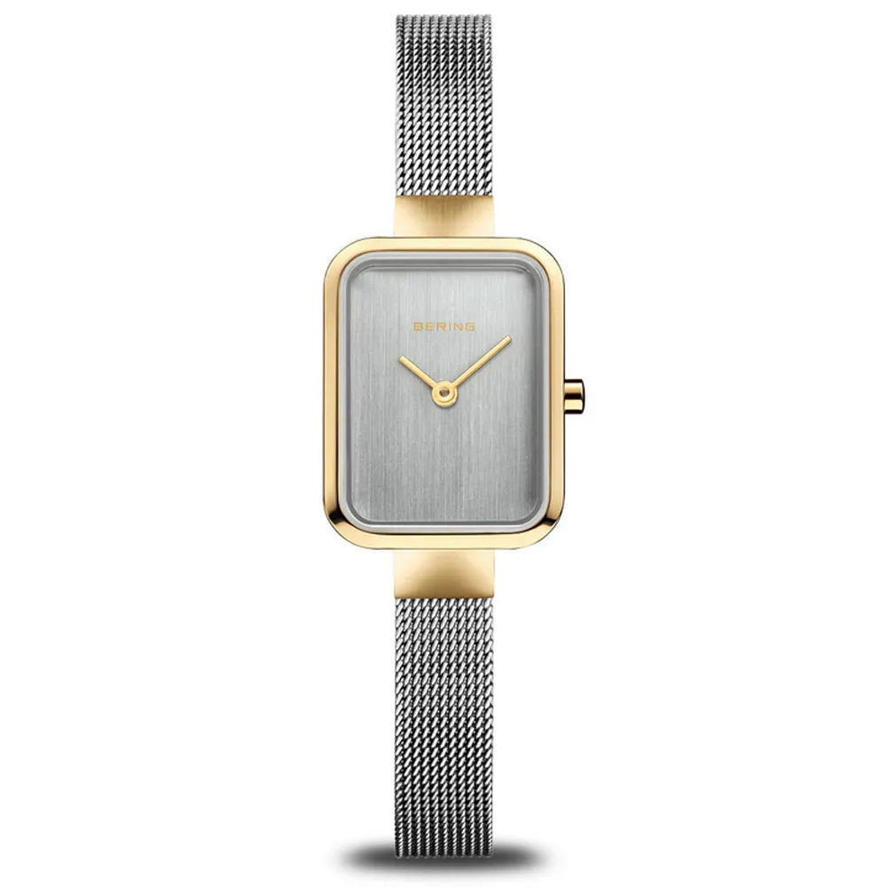 BERING Damenuhr Edelstahl bicolor klein eckig - Damenuhr silberfarben und goldfarben