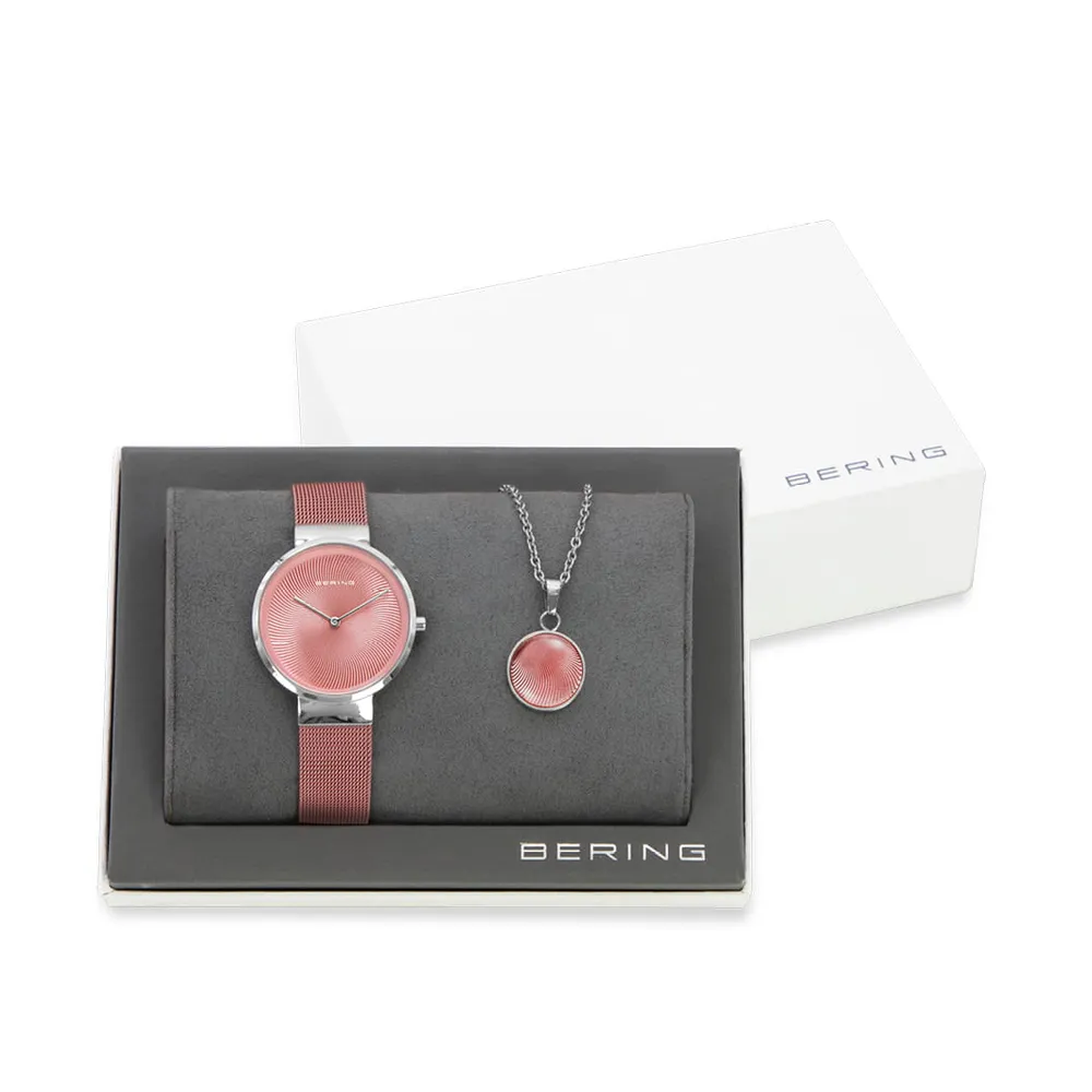 BERING Charity Set Uhr Milanaiseband rosa Kette mit Anhänger rosa 19031-989-GWP