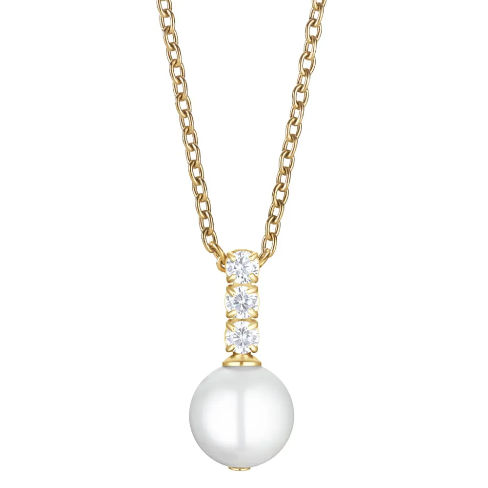- Anhänger mit drei funkelnden Kristallen und synthetischer Perle