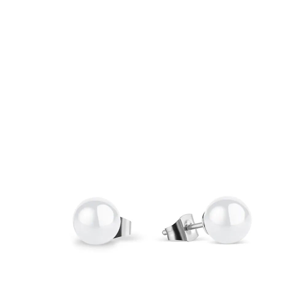BERING Ohrstecker Edelstahl mit weißer Keramik Perle - Ohrstecker