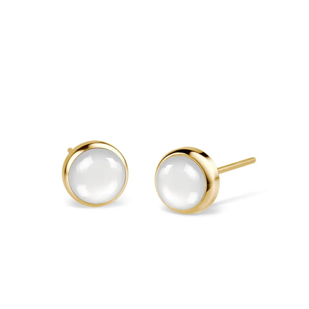 BERING Ohrstecker rund aus Edelstahl goldfarben Stein weiß