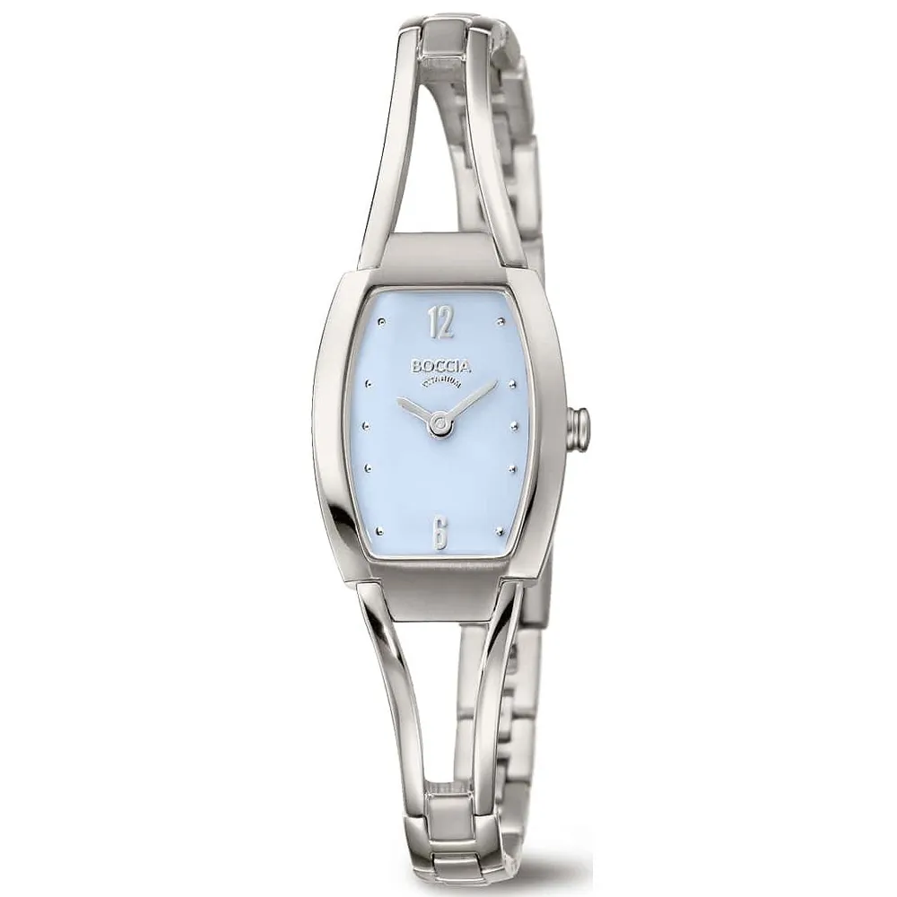 Boccia Damenuhr aus Titan silberfarben mit hellblauen Zifferblatt 3262-03