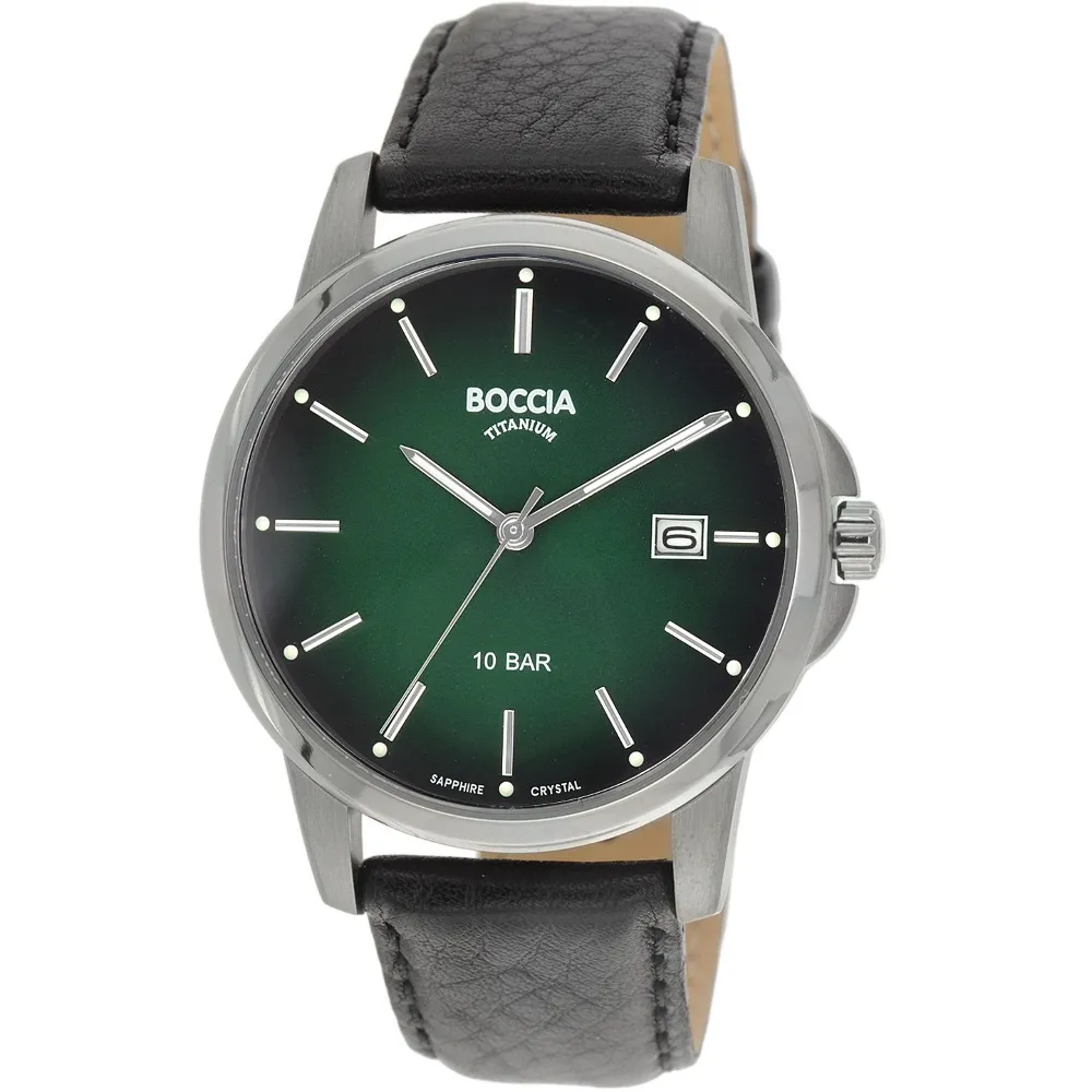 Boccia Herrenuhr Titan mit schwarzem Lederband und Saphirglas 3633-02