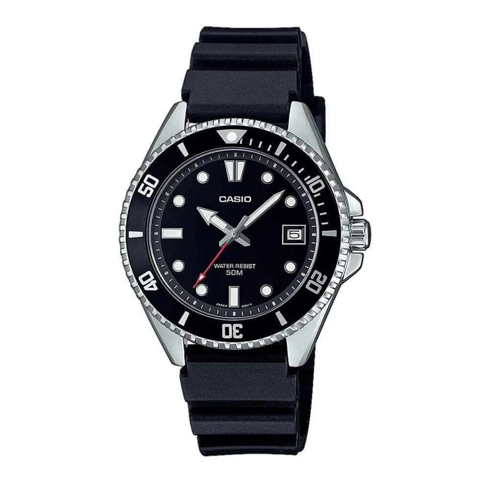 Casio Armbanduhr mit schwarzem Silikonband silberfarben MDV-10-1A1VEF