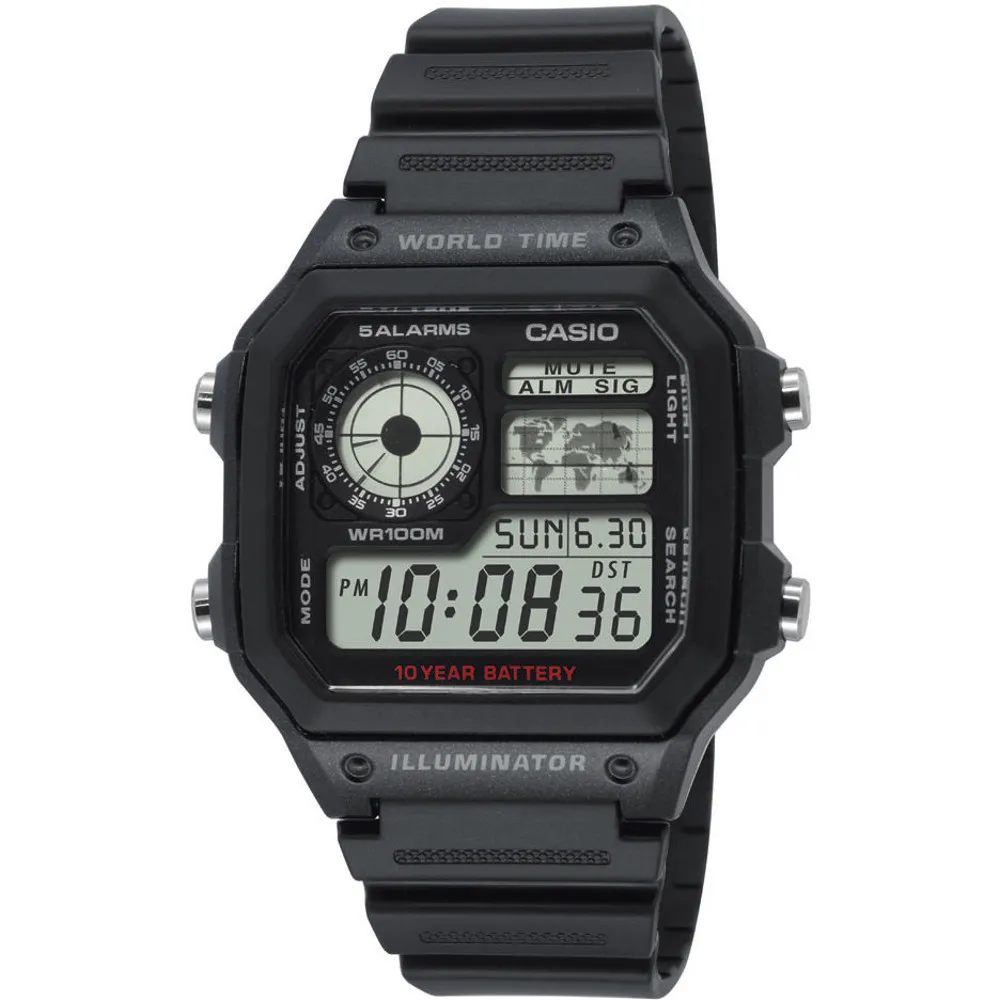 Casio Digitaluhr schwarz mit LED Beleuchtung und Weltzeitfunktion AE-1200WH-1AVEF