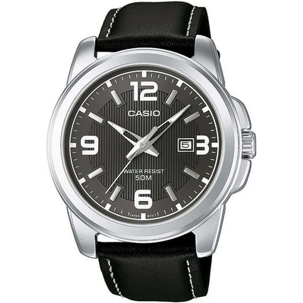 Casio Herrenuhr rund mit schwarzem Lederband MTP-1314PL-8AVEF