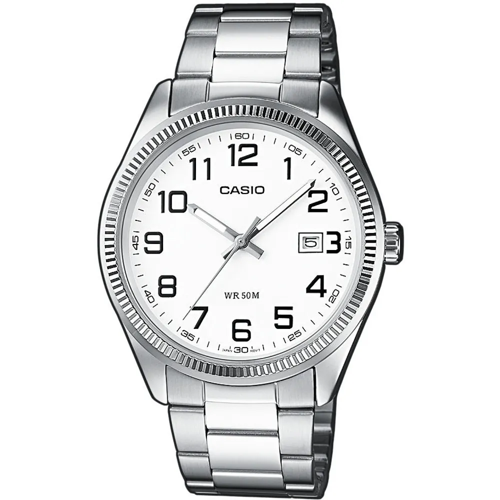 Casio Herrenuhr rund silberfarben weiss mit Edelstahlband MTP-1302PD-7BVEF