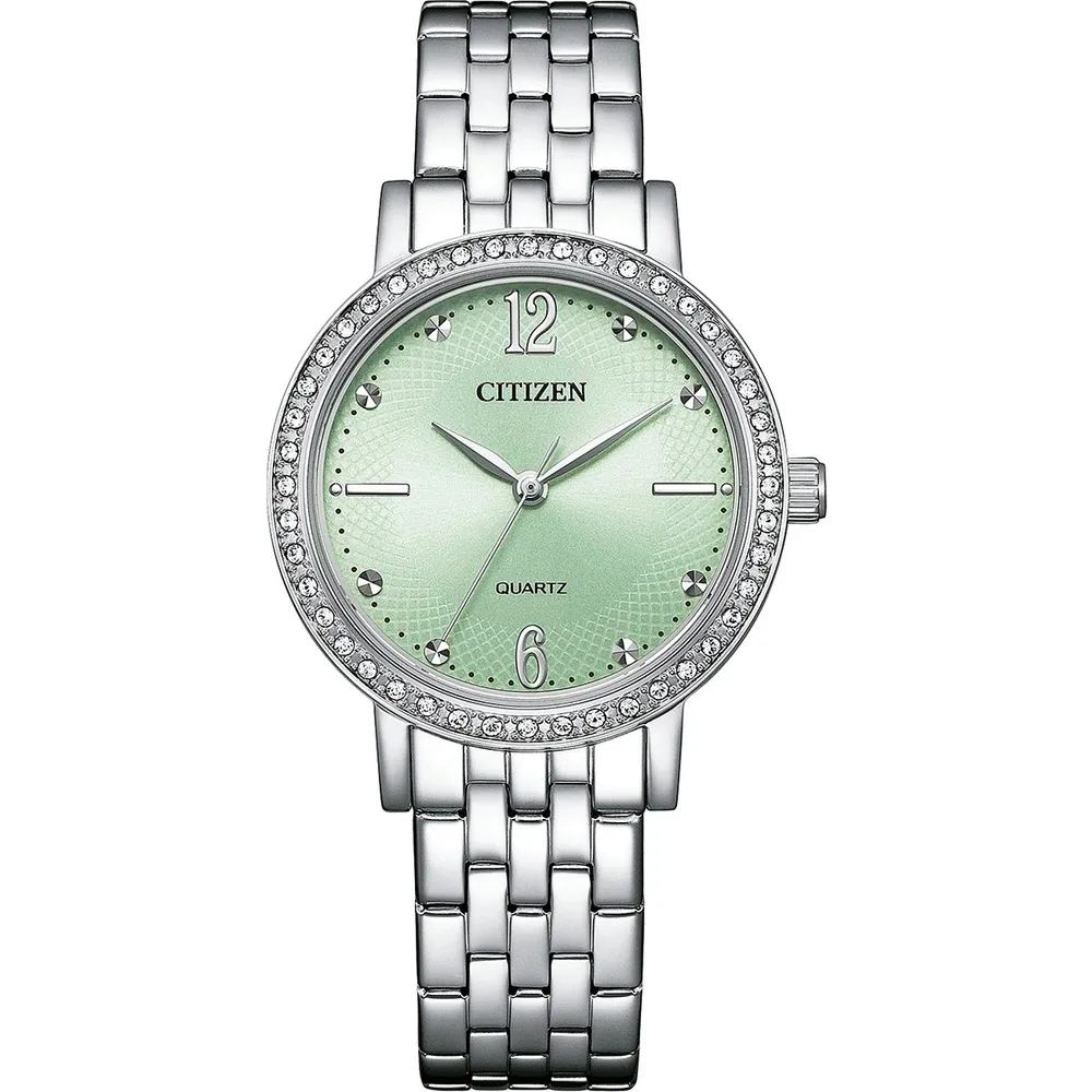 Citizen Damenuhr Edelstahl Zirkonias Zifferblatt grün EL3100-55X