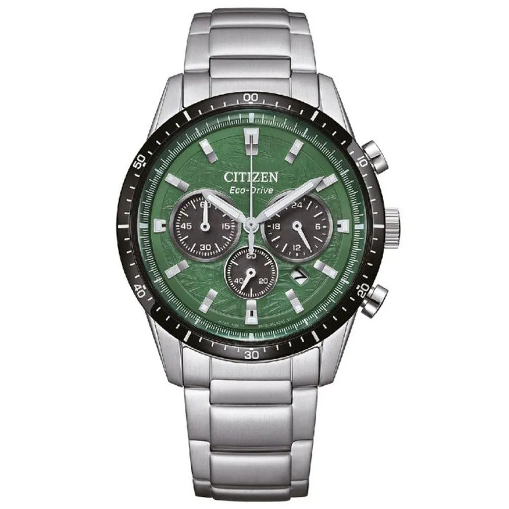 Citizen EcoDrive Solar Herrenuhr Chrono silberfarben grün schwarz CA4624-56X