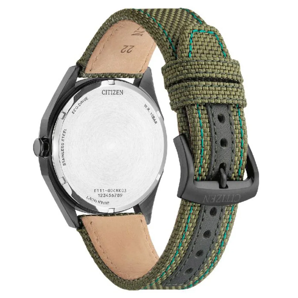 Citizen Solar Herrenuhr Elegance schwarz mit grünen Gewebeband BM7635-01X