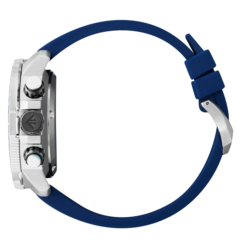 - einseitig drehbare blaue Lünette mit Minutenskala und Leuchtpunkt