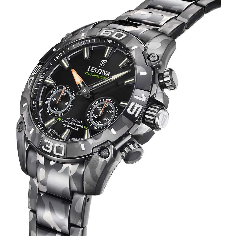 Festina Herrenuhr Connected Hybrid Smartwatch Chrono Bike 2021 schwarz mit Camouflage Muster