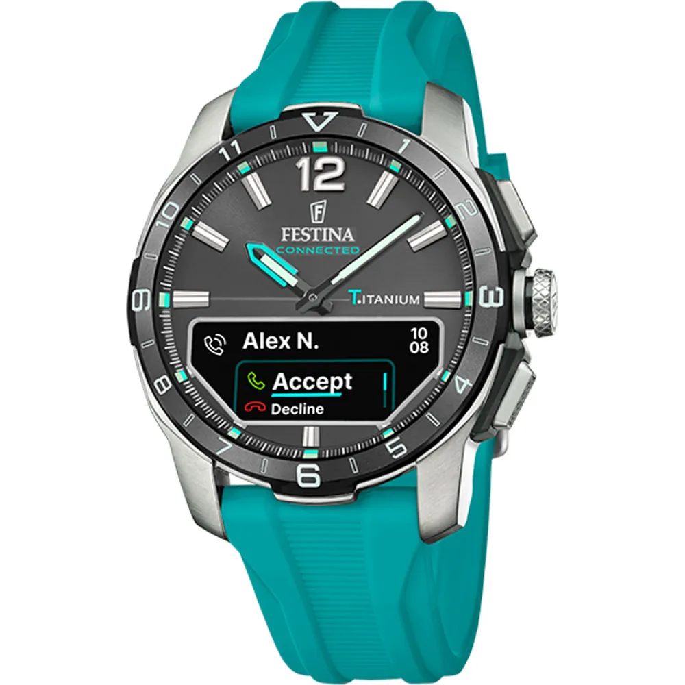 Festina Connected Hybrid Smartwatch Titan grau Silikonband türkis F23000/5