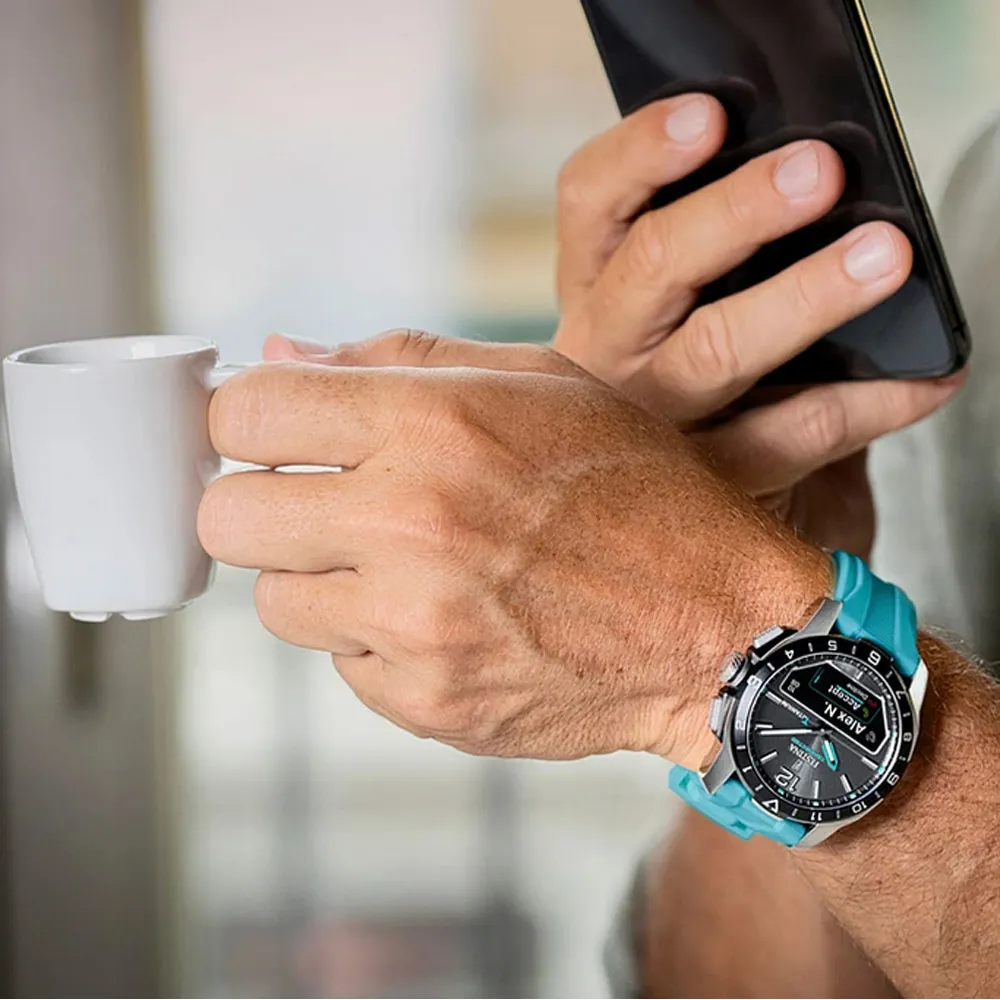 Festina Connected Hybrid Smartwatch Titan grau Silikonband türkis