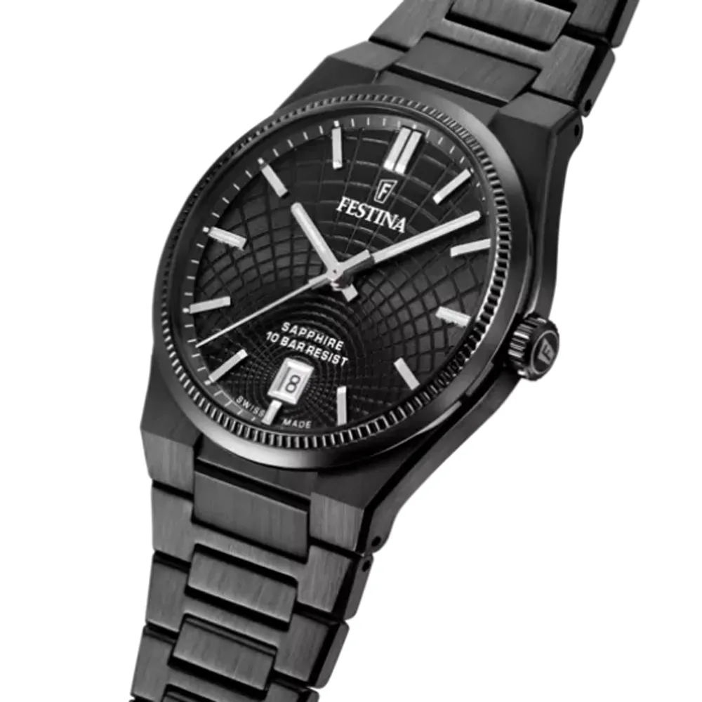 Festina Swiss Made Herrenuhr Rivè aus Edelstahl schwarz black ip F20080/1