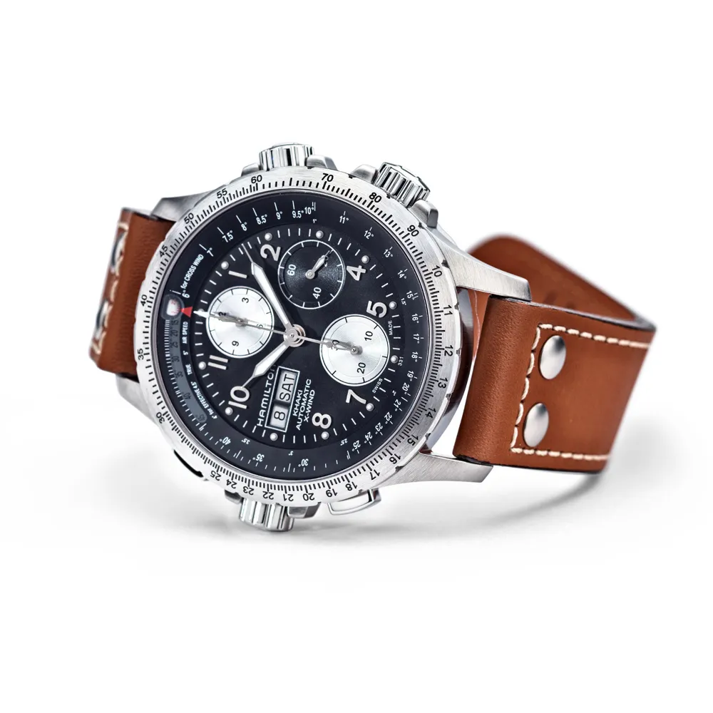 HAMILTON Herrenuhr Automatik Lederarmband Khaki Aviation X-Wind Day Date Chronograph