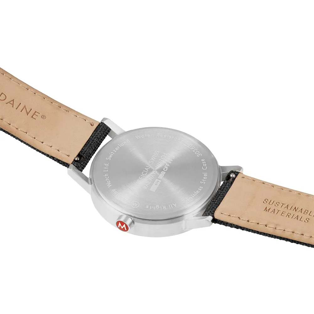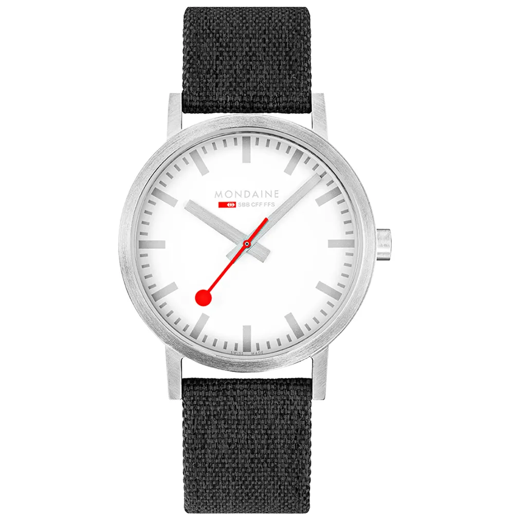 Mondaine Classic Armbanduhr mattiert 40 mm mit dunkelgrauem Textilband