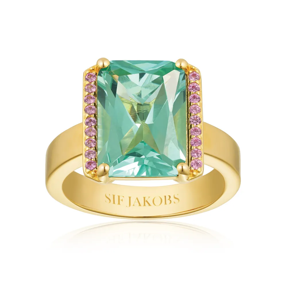 SIF JAKOBS Ring Roccanova Silber 925 vergoldet mit türkisem Stein Gr. 58 SJ-R42267-TQPK-YG-58