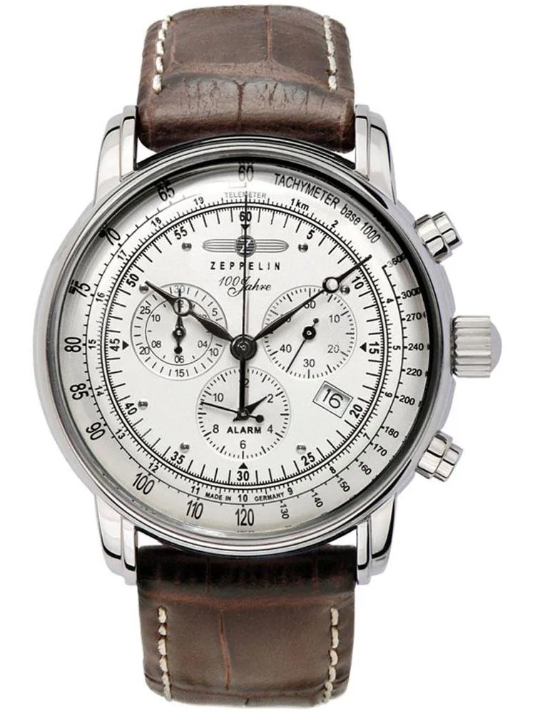 Zeppelin 100 Jahre Herrenuhr Chronograph silberfarben braun 7680-1