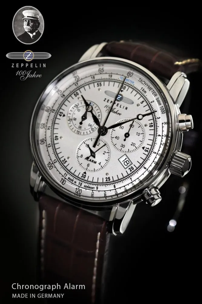 Das Uhrmodell stammt aus der Serie 100 Jahre Zeppelin. Dabei wurde auf die Gestaltung des Designs höchsten Wert gelegt, damit es der legendären Ära der Anfänge der Luftfahrt mit dem Zeppelin Luftfahrtschiff in Form und Konzept ohne Kompromisse gerecht wird.