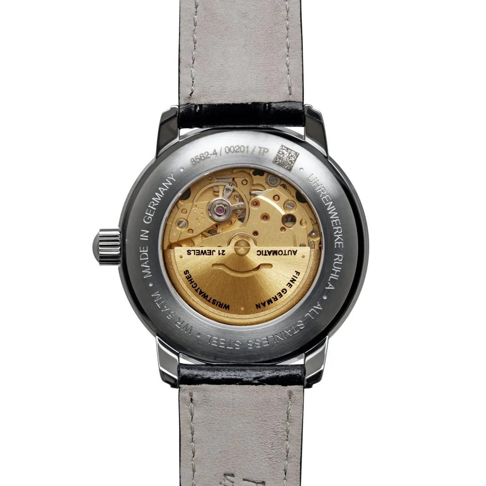 - silberfarbener Sekundenzeiger mit roter Spitze