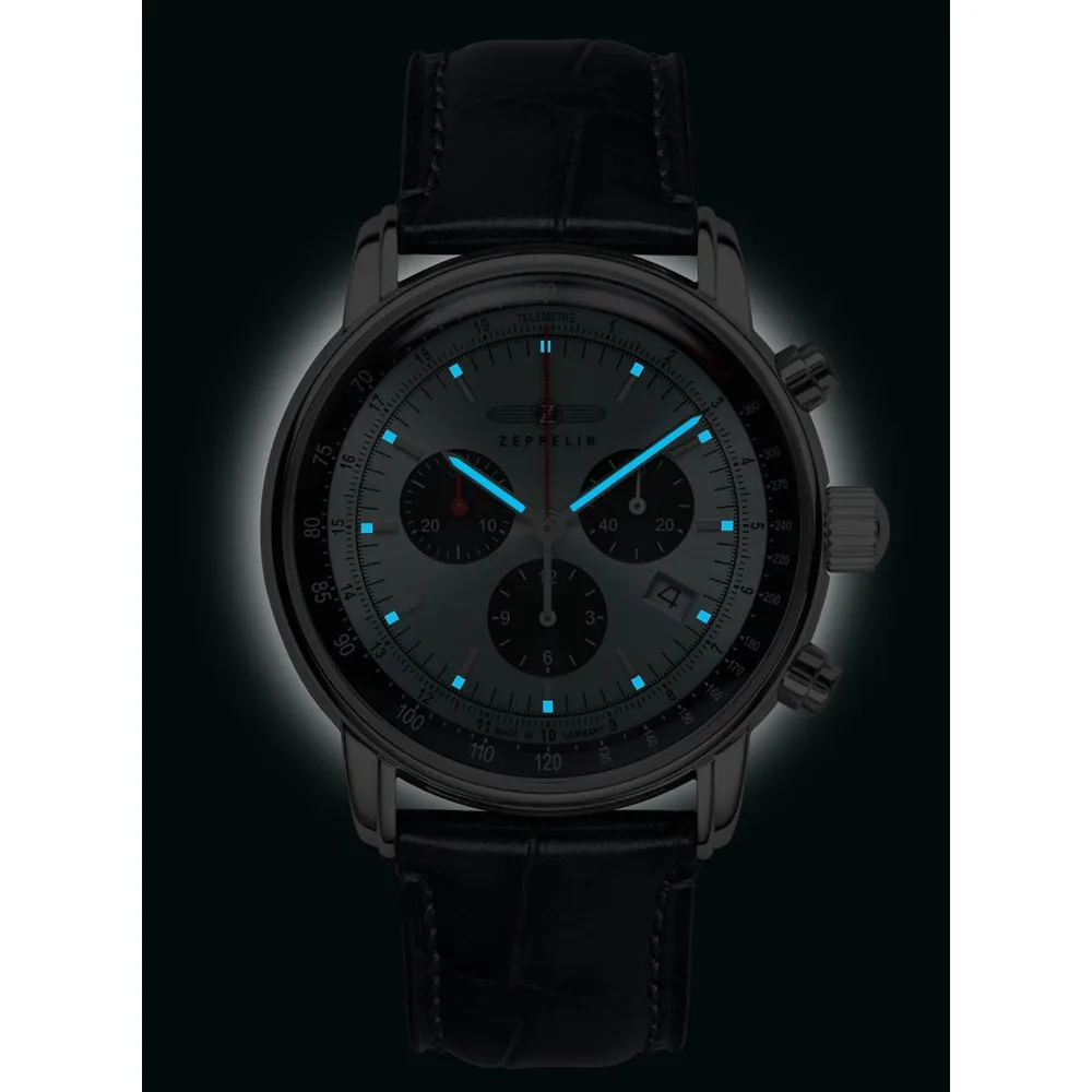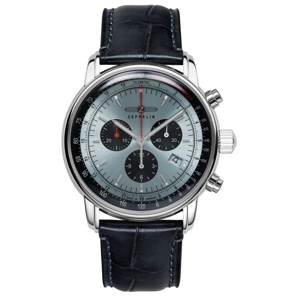 Zeppelin Herrenuhr LZ 14 Chronograph Marine Bleu mit blauem Lederband 8886-2