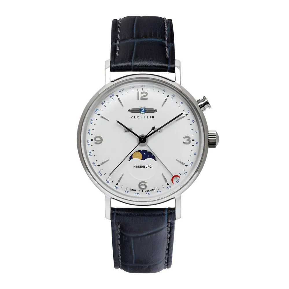 Zeppelin Hindenburg Mondphase Armbanduhr silberfarben dunkelblau 8076-1