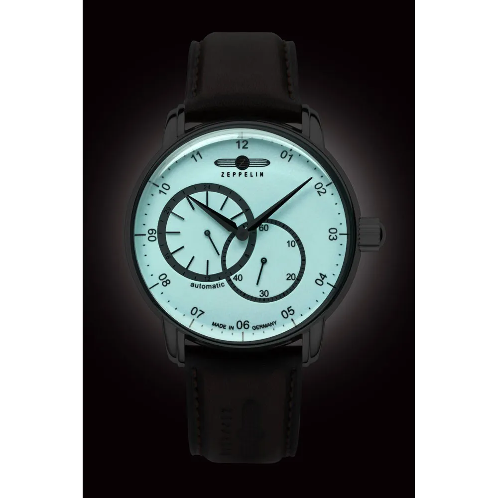 Zeppelin New Captain's Line Automatic Superluminova mit braunem Lederband- zeitlose Herren-Automatikuhr