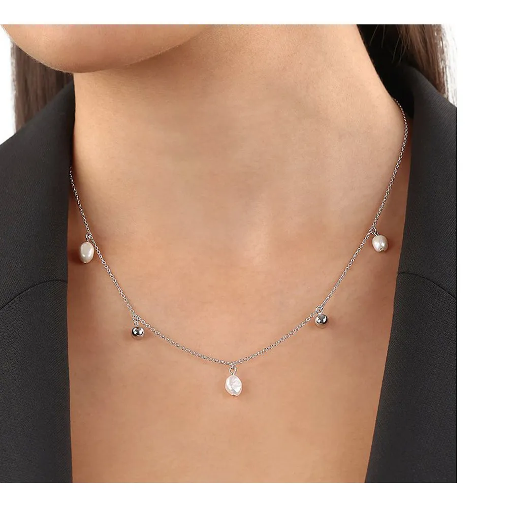 s.Oliver Halskette 925 Silber mit Muschelkernperlen 45 cm 2037815