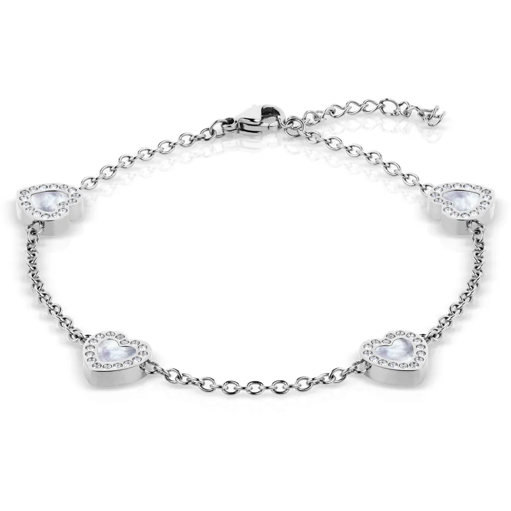 - verspieltes Armband mit vier Herzelementen mit Perlmutt-Inlay