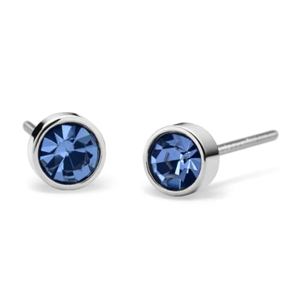 Bering Ohrstecker rund aus Edelstahl mit blauem Zirkoniastein