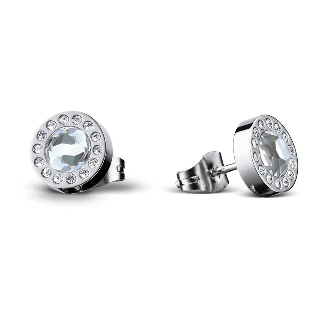 BERING Ohrstecker rund aus Edelstahl mit weißen Steinen 711-175-05