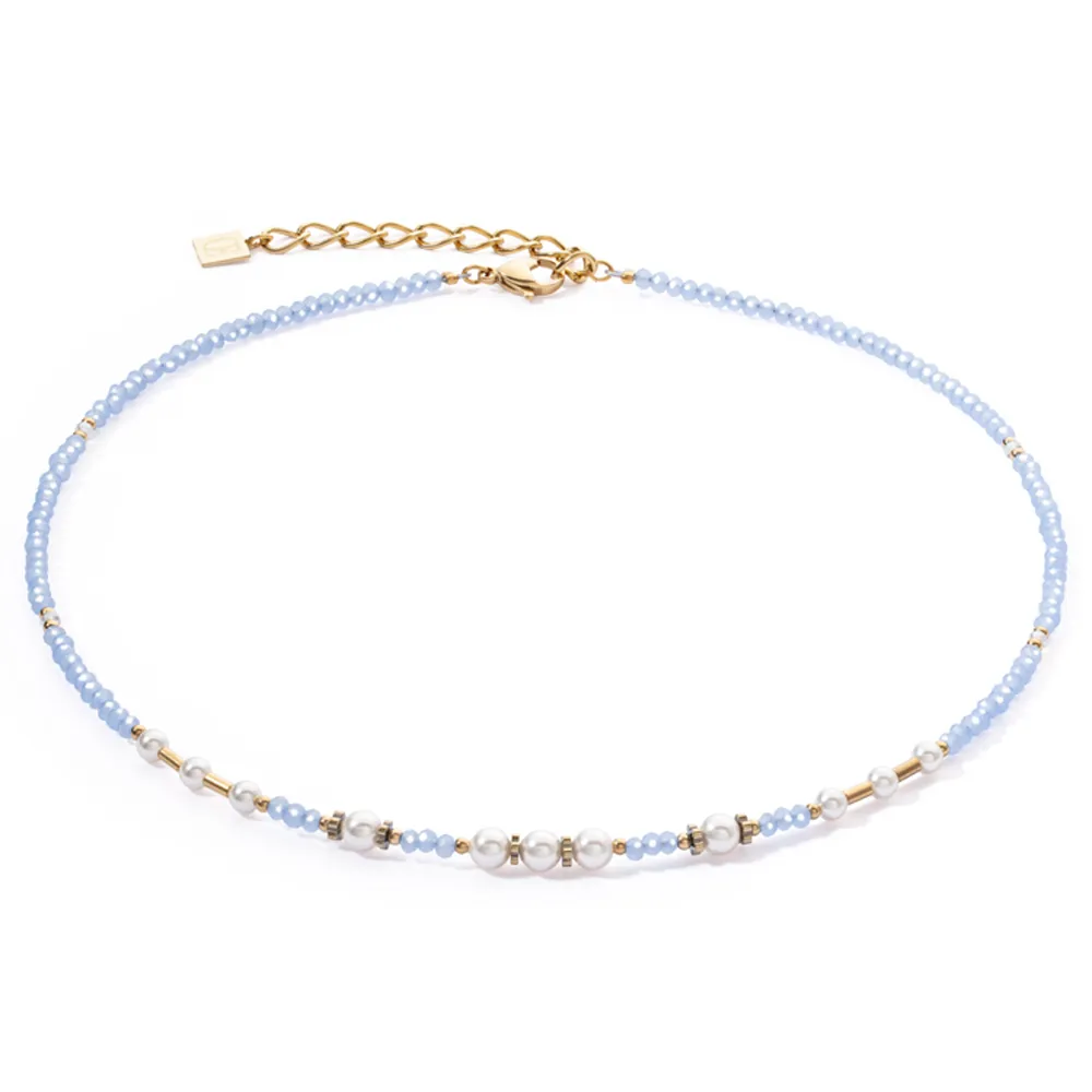 Coeur de Lion Halskette Edelstahl goldfarben blau weiss