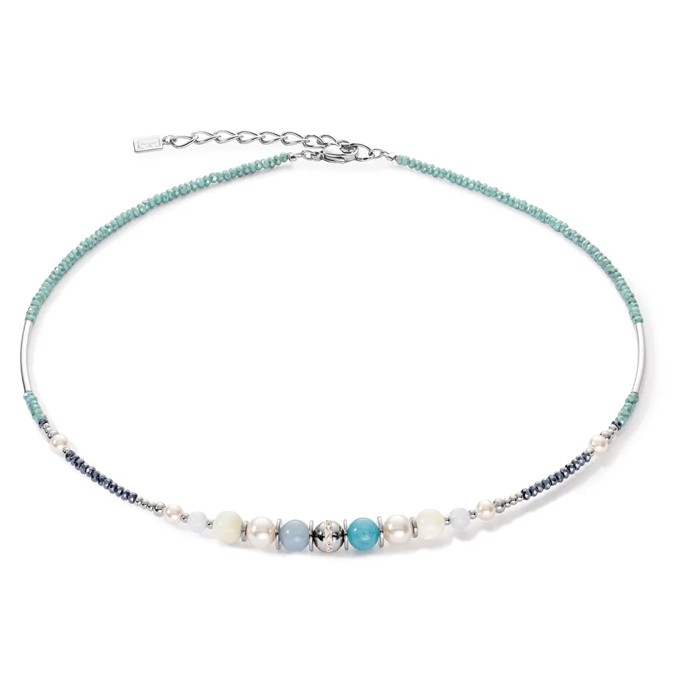 Coeur de Lion Halskette Kristalle mit Perlen aqua-silberfarben