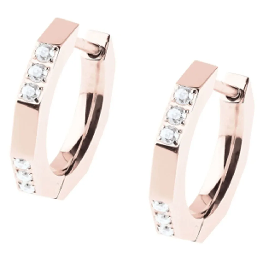 Ernstes Design Creole Edelstahl poliert rosegoldfarben Zirkonia weiß 2 mm E602