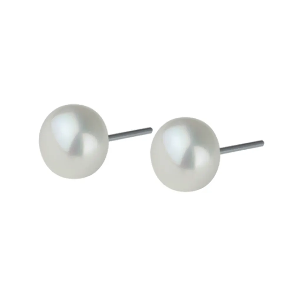 - Ohrstecker aus Edelstahl mit weißer Süßwasser Button Perle