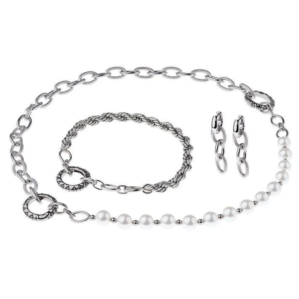 Ernstes Design Schmuckset Edelstahl mit Perlen Ohrringe Armband Halskette