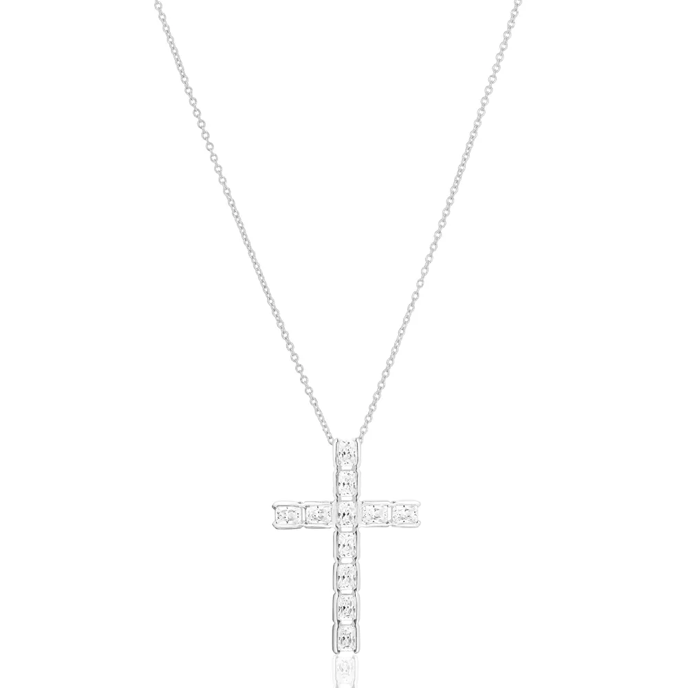 - Anhänger in Form eines Kreuzes mit facettierten weissen Zirkoniasteinen verziert