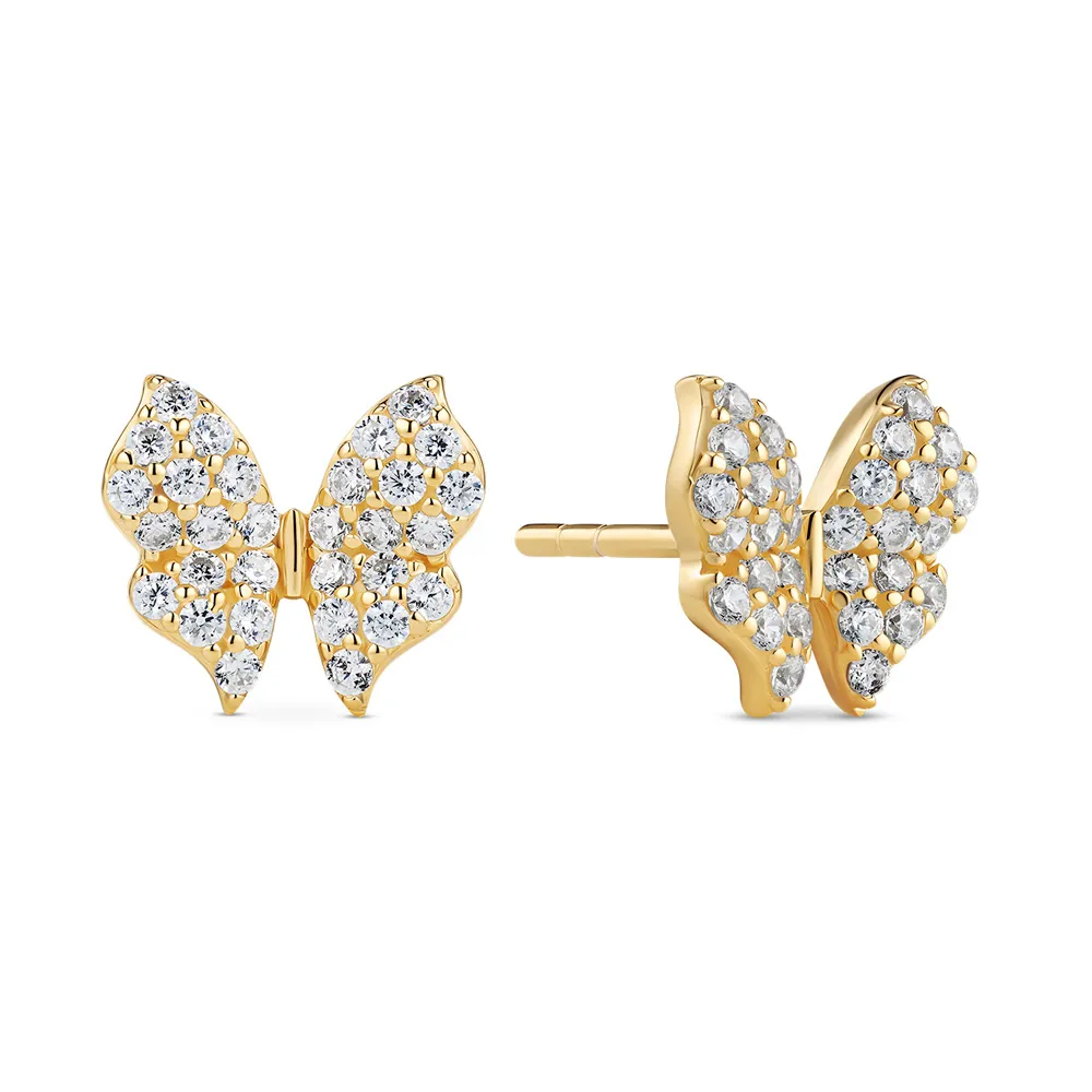 SIF JAKOBS Ohrringe Farfalla Schmetterlinge Silber 925 vergoldet SJ-E2700-CZ-YG