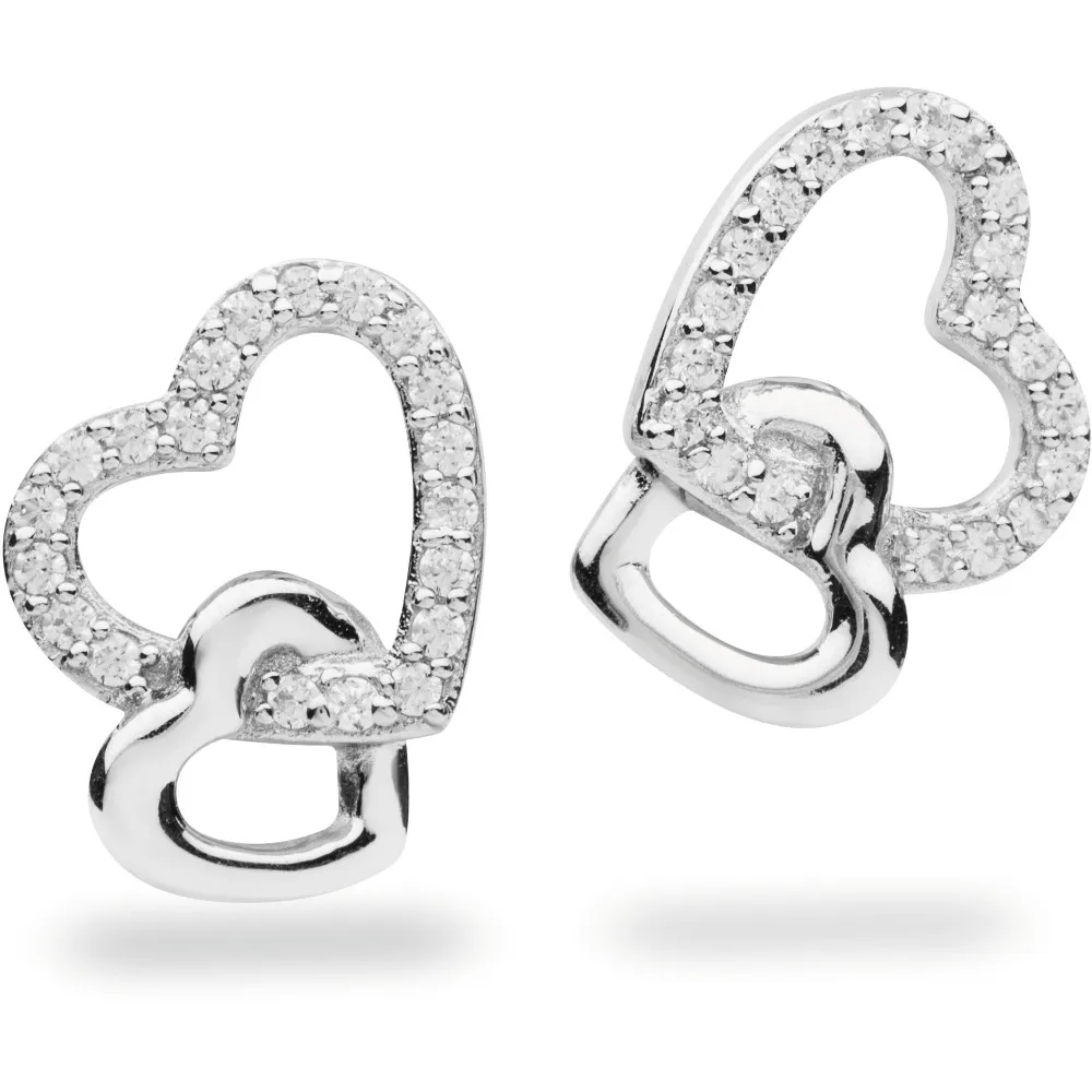 Elegante Ohrstecker aus 925er Silber bestehend aus zwei Herzen, die ineinander verschlungen sind. Das größere Herz ist mit funkelnden Zirkoniasteinen besetzt.