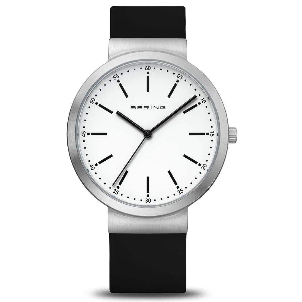 Bering Classic Armbanduhr Edelstahl mit Silikonband schwarz