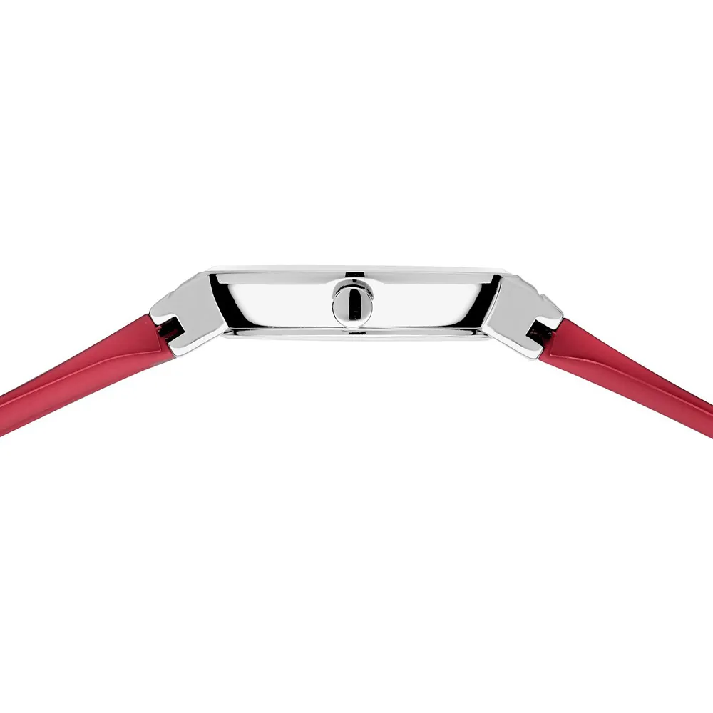 BERING Classic Damenuhr Edelstahl Zifferblatt rot Silikonband rot