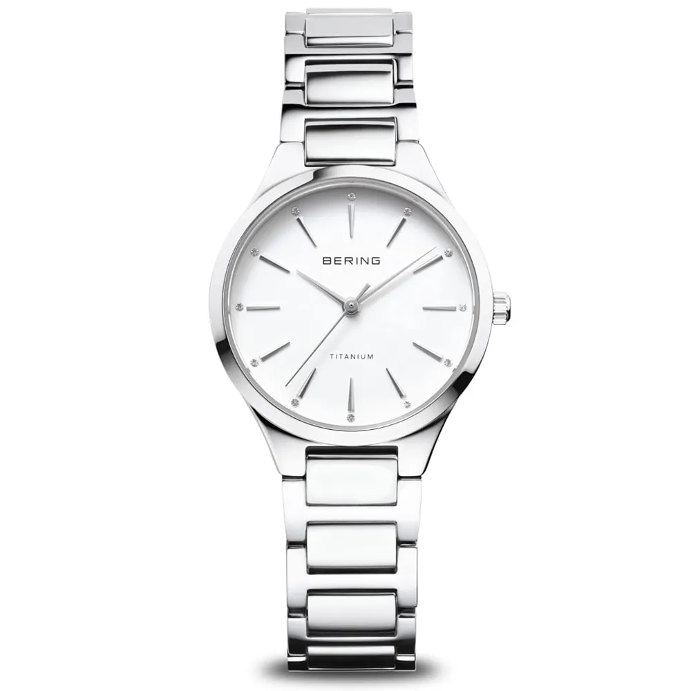 Bering Damenuhr Titan silberfarben Zifferblatt weiss aus Titan verbindet edles Design mit hoher Funktionalität. Ihr leichtes Gehäuse und das robuste Saphirglas machen sie ideal zum täglichen Gebrauch