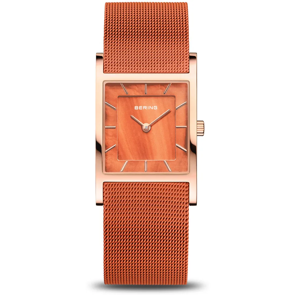 BERING Damenuhr eckig orange rosegoldfarben mit Milanaiseband 10426-565-S