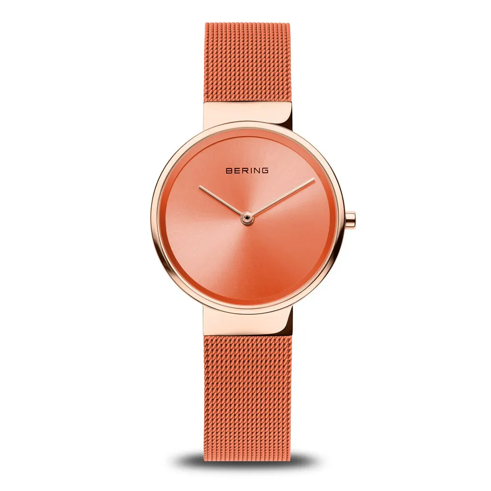 BERING Damenuhr rosegoldfarben poliert mit Milanaiseband orange