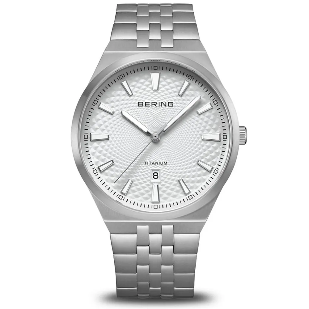 BERING Herrenuhr aus Titan silbergrau mit weissen Zifferblatt 16141-704
