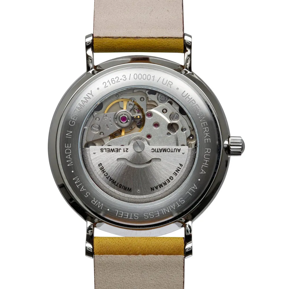 Bauhaus Automatik Herrenuhr mit senfgelbem Lederarmband - Made in Germany