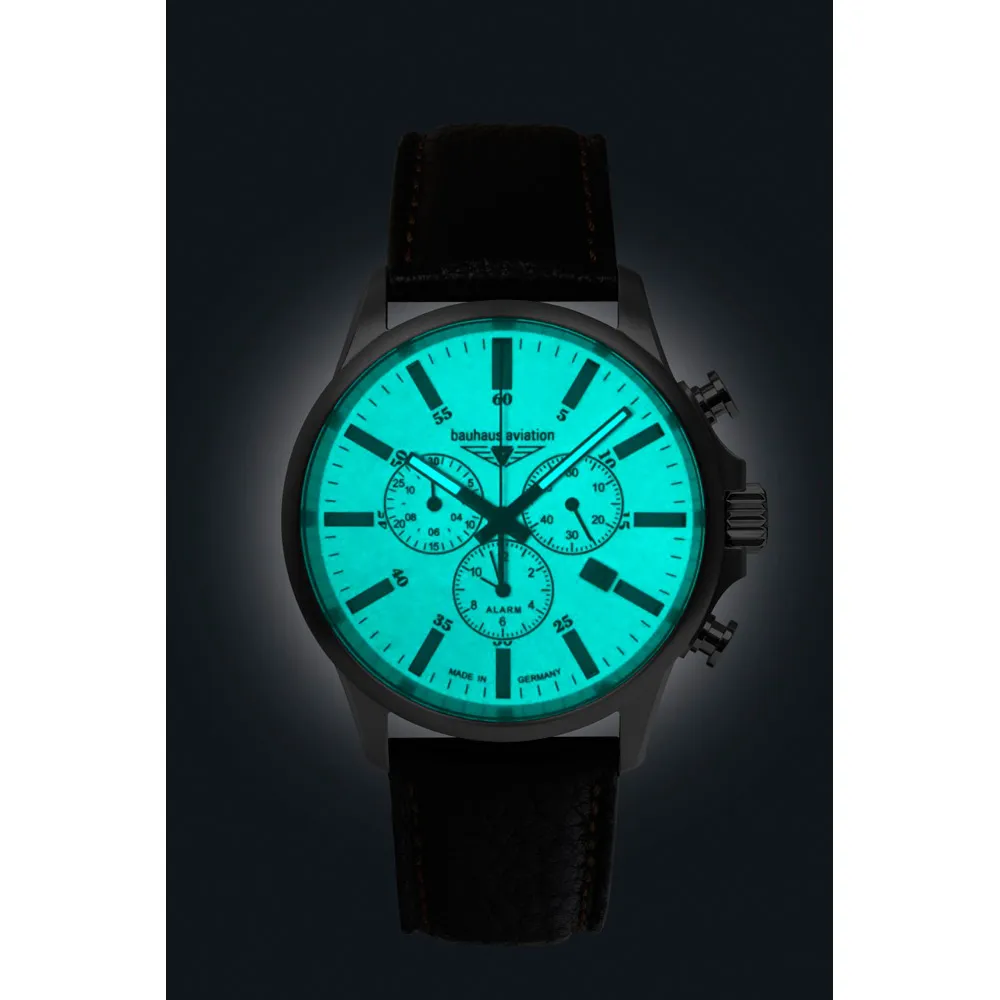 Bauhaus Aviation Chronograph mit Titangehäuse silberfarben und braunem Lederband 2880-5