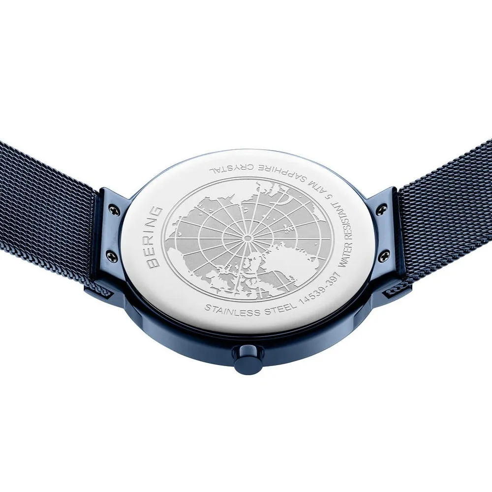 Die Bering Armbanduhr 14539-397 setzt modische Akzente mit ihrem ganz in blau gehaltenen Erscheinungsbild und dem eleganten Sunray Ziffernblatt. Das hochwertige Milanaisearmband sorgt für einen stilvollen Look und ist angenehm zu tragen.